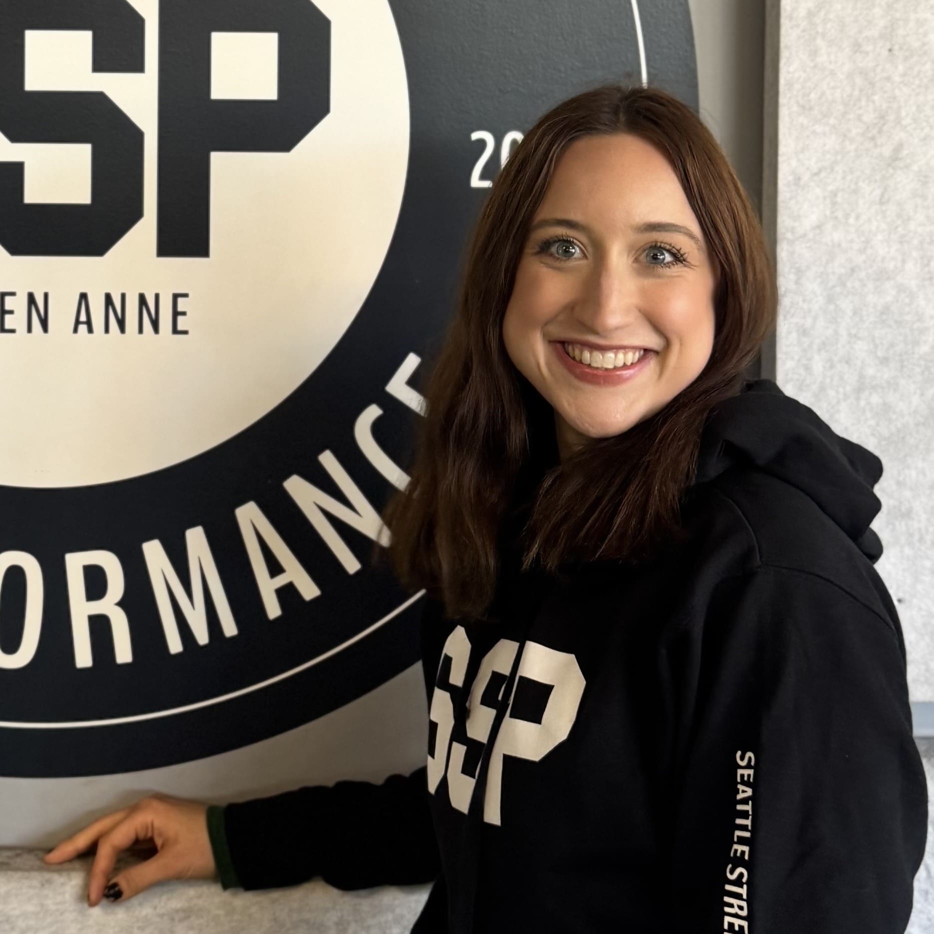 Fun fact: she moved from California to Seattle 2 years ago specifically for this role at SSP! Outside of work and lifting, you can find her spending time with her border collie, Scout, playing pickleball, or training for her first marathon!